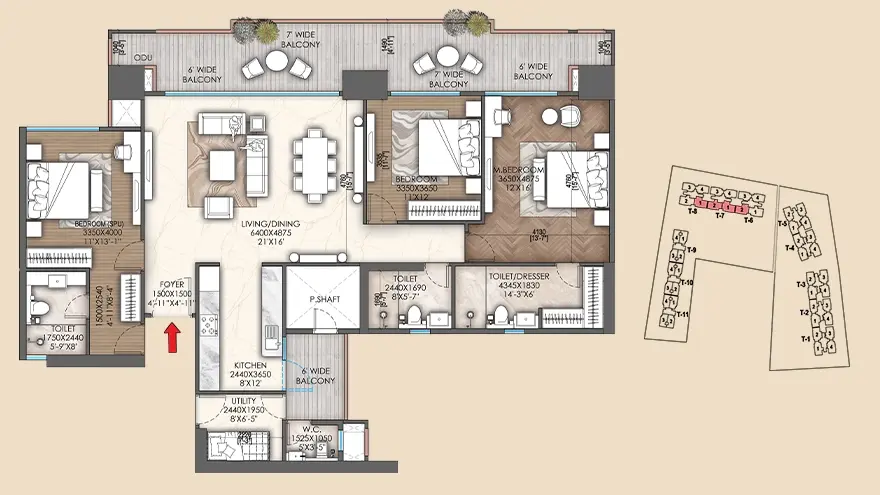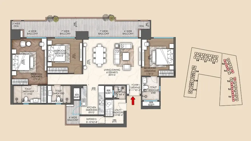 | 3 BHK + 3T + Utility - Type 1 | 2260 SQ.FT | ₹ 3.55 Cr |